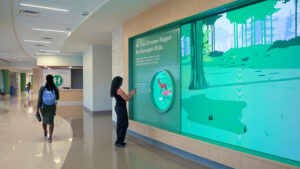 Dimensional Innovations has unveiled an interactive donor wall at the new Children’s Healthcare of Atlanta (Children’s) Arthur M. Blank Hospital in Georgia. The 18-by-8-foot LED wall features a living digital forest where woodland creatures come to life with every new donation. By scanning a QR code, visitors can “adopt” an animal, watch it appear on the screen and even find it again on future visits.