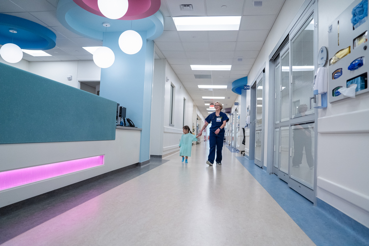 The center’s design creates an integrated inpatient and diagnostic pediatric heart center on two floors of the recently completed North Pavilion. Working in tandem with the clinical team, the design team utilized augmented reality technology to assist in communicating design and planning concepts, allowing staff the ability to experience the new space before it was built. This approach also allowed the design team to make both large and small adjustments, ultimately improving functionality, safety and efficiency.