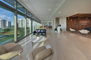 For example, on Robins & Morton’s Boca Raton Regional Hospital project, the Gloria Drummond Patient Tower located in Florida, early engagement with the design team and client identified clear goals for the project. Together, we focused on creating a destination for health and wellness, while also prioritizing resiliency and operational efficiency. This vision enabled intentional collaboration with the design team and key trade contractors, encouraging them to bring forward innovative ideas for team evaluation and analysis.