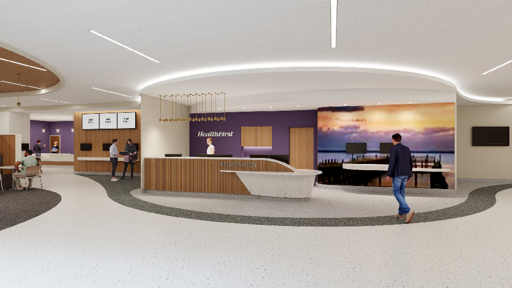 An example of translating hospitality principles into operational outcomes is Health First’s Cape Canaveral, a replacement hospital under construction in Merritt Island, Florida, which was designed with a focus on the human experience first, then operational convenience. The $410-million Cape Canaveral replacement hospital campus, which includes a 120-bed hospital and 92,000-square-foot medical office building, is designed around real human behaviors, not institutional assumptions. Evidence-based insights into stress reduction, wayfinding and environmental psychology are applied at every level of the campus’ design.