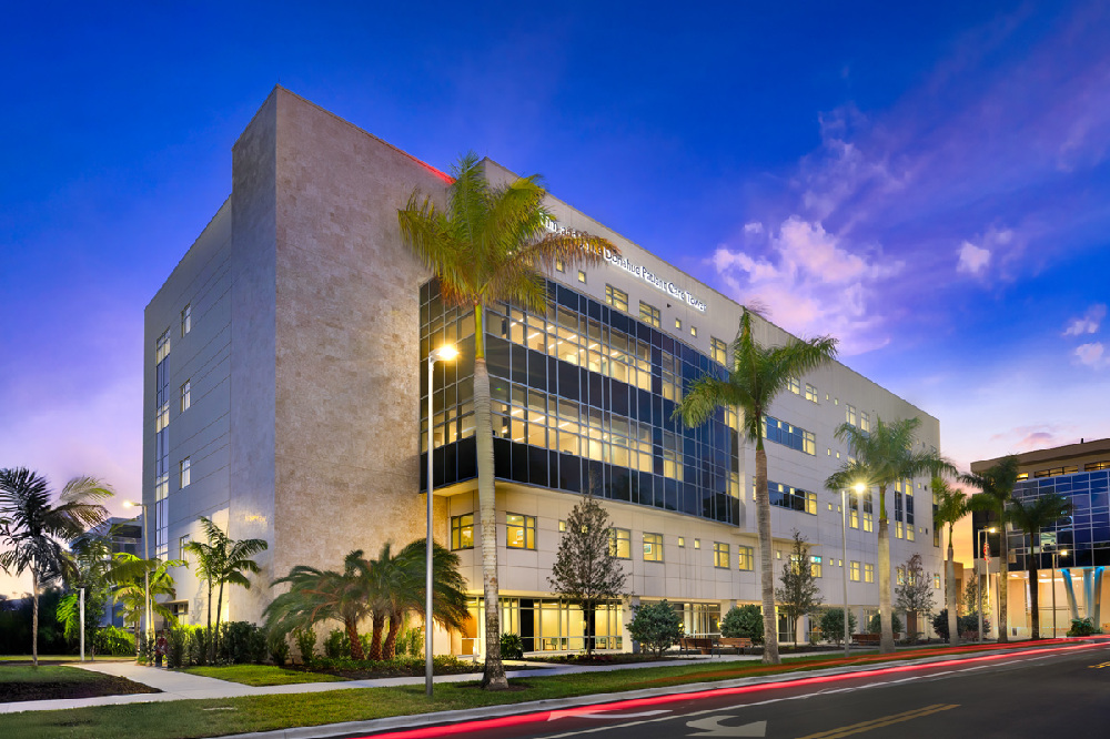Prefabricating the building skin, glazing and long linear systems resulted in four months of schedule savings on the Jupiter Medical Center’s Tim and Jayne Donahue Patient Care Tower. Photo credit: Miami In Focus