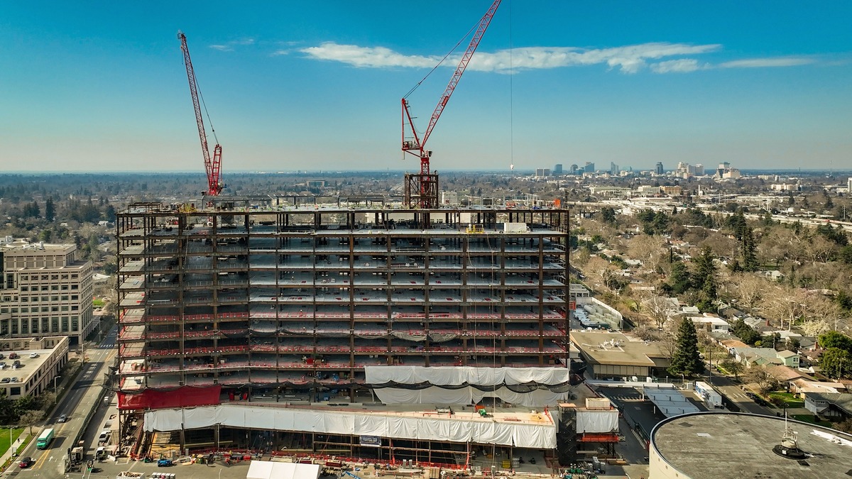 A new tower at UC Davis Health, located in Sacramento, California, has topped out. Project partners, field teams and leaders gathered on-site to recognize the achievement, which brought the structure to its full height. The tower features 22,000 pieces of steel weighing 15,000 tons. The milestone also signals ironworkers are nearing completion of their work on the tower as the project transitions into its next phase.